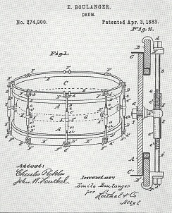 The snare drum, which final shape with double tension is an American invention (patent of Emile Boulanger, 1883 (see photo), with independent tuning of each skin) is normally 14 " wide. This is the standard size, below it is called "piccolo" snare ("small" in Italian, the language of music since the Renaissance and the beginnings of European classical music theory). Its depth varies from 2 to 8 1/2 ".